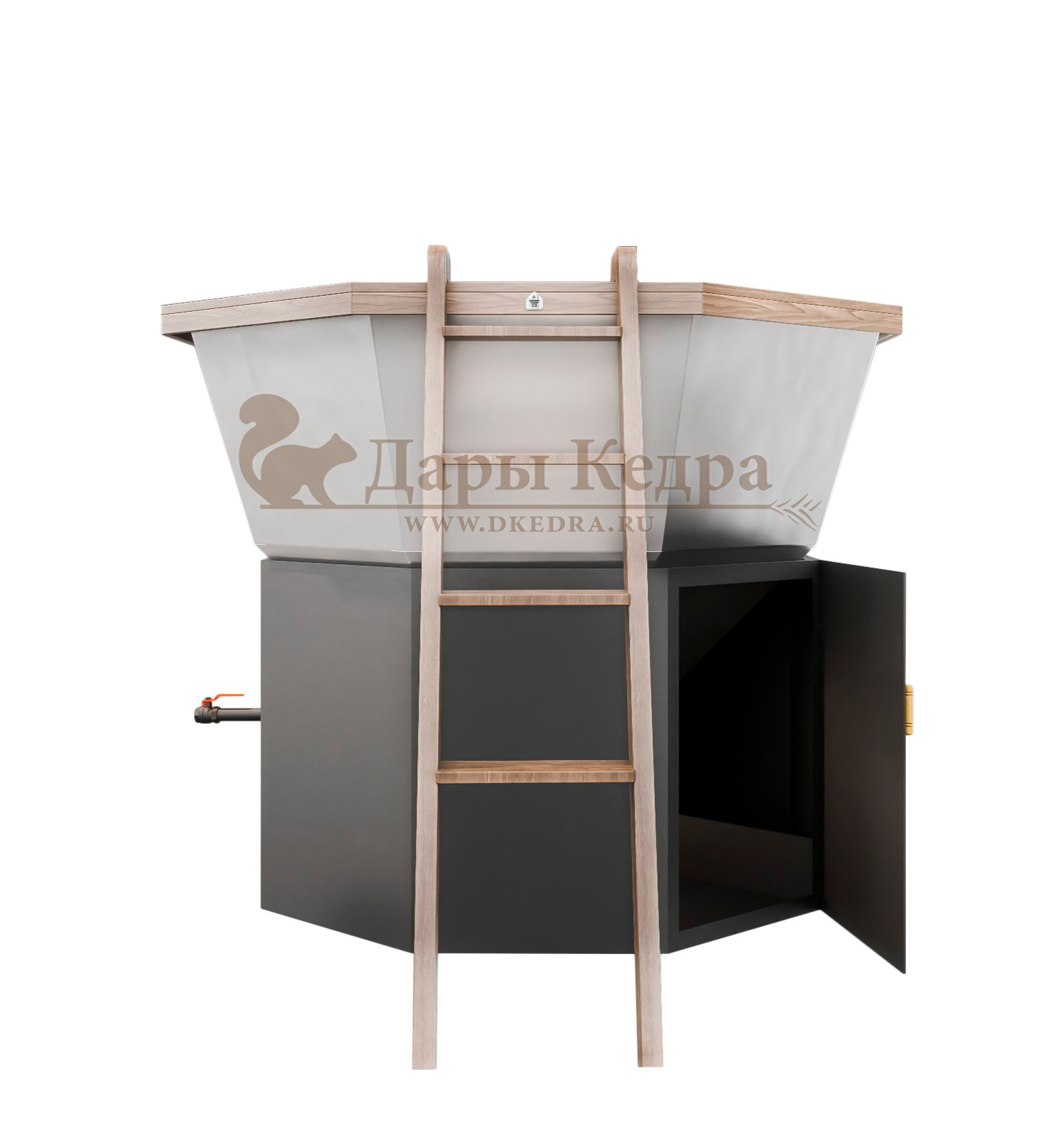 Конструкция устанавливается на прочную подставку, обеспечивающую устойчивость. Для удобства предусмотрена лестница, ведущая внутрь чана. Внутри оборудованы удобные сиденья, позволяющие комфортно расположиться. В зависимости от модели, вместимость составляет от 5 до 10 человек — отличный вариант для семьи или компании.