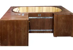 Детская купель из кедра, будет радовать вас и вашего малыша долгое время. К тому же, благородное натуральное дерево будет одинаково красиво смотреться, как на улице, так и в помещении. Купель можно сделать, как с обручами, так и без них, по вашему желанию. Цена будет неизменной.