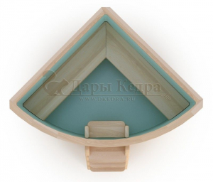 Это треугольная емкость для воды с пластиковой чашей. Она предназначена для отдыха и охлаждения тела после банных процедур. Купель устанавливается в угол помещения, что идеально для не больших пространств. Так же подходит для уличного использования. Угловая купель с пластиковой вставкой оснащена лавочками, приставной и внутренней лестницей из кедра.