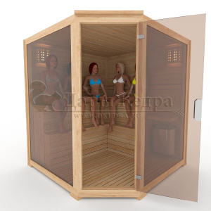 Пятиместная угловая финская сауна кабина из кедра с электрокаменкой