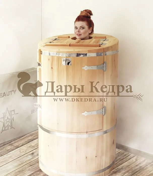 • Мини - сауна занимает около 1 кв.м: высота изделия - 130 см, диаметр - от 78 см.